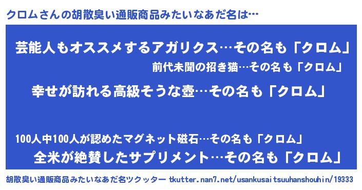 | 意味不明あだ名 | 『クロムフォーエバー』『自称クロム』 |