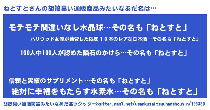 | ヒーロー風カッコイイあだ名 | 『正義の使者ねとすと』『ネオネトスト』 |