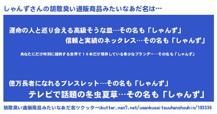 | 意味不明あだ名 | 『住所不定無職しゃんず(89歳)』 |