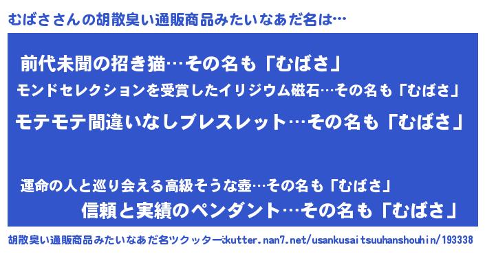 | ヘコむあだ名 | 『むばふぇ~』『むばさ(小並感)』 |