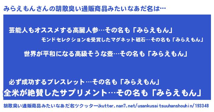| 肩書あだ名 | 『みらえもん大統領』『みらえもん閣下』 |