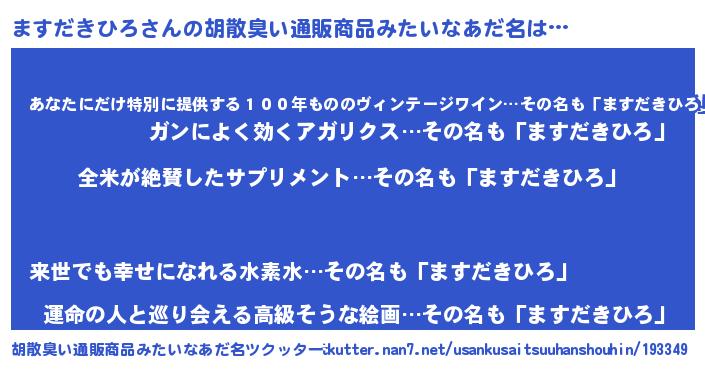 | 意味不明あだ名 | 『とにかく怪しいますだきひろ』 |