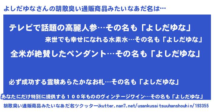 | ヘコむあだ名 | 『よしっちょ』『よしだゆな(笑)』 |