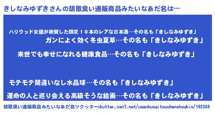 | ヘコむあだ名 | 『きしなみゆずき(爆)』『牛乳』 |