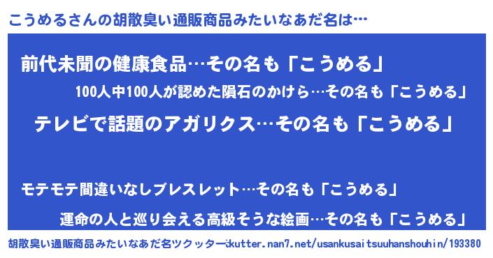こうめるさんの胡散臭い通販商品みたいなあだ名をツクッター!