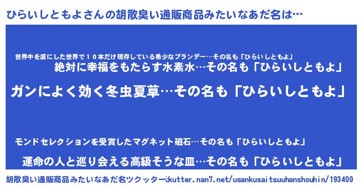 | 欧米人風あだ名 | 『ケンブリッジひらいしともよ』 |