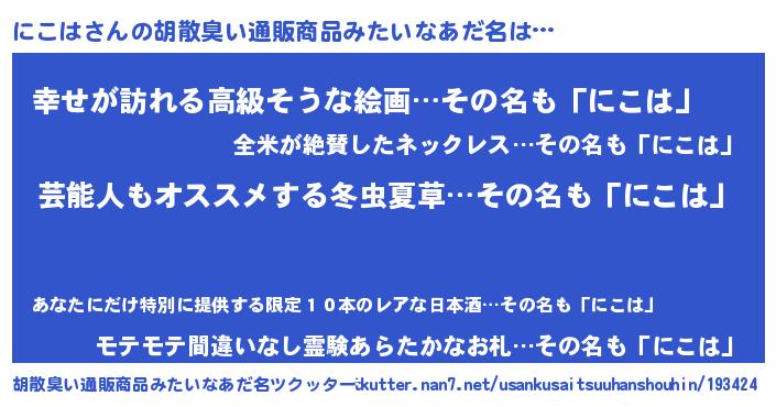 | ヒーロー風カッコイイあだ名 | 『最強戦士ニコハ』『ウルトラにこはマン』 |