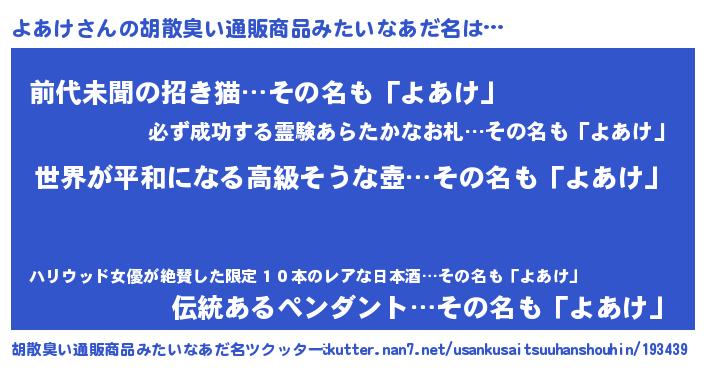 | 男性向けラノベタイトル風あだ名 | 『転生したらよあけだった件』 |