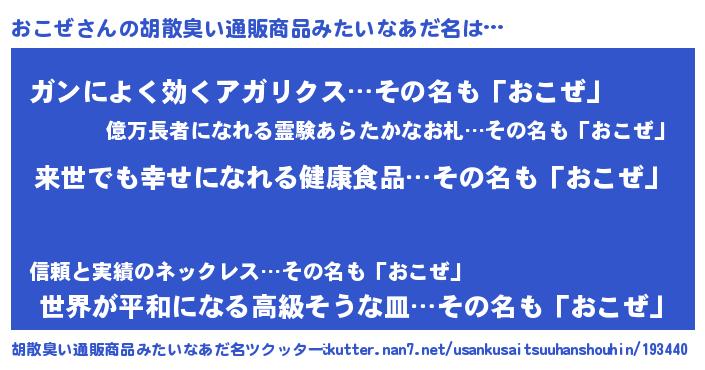 | 意味不明あだ名 | 『永久保存おこぜ』『自称おこぜ』 |