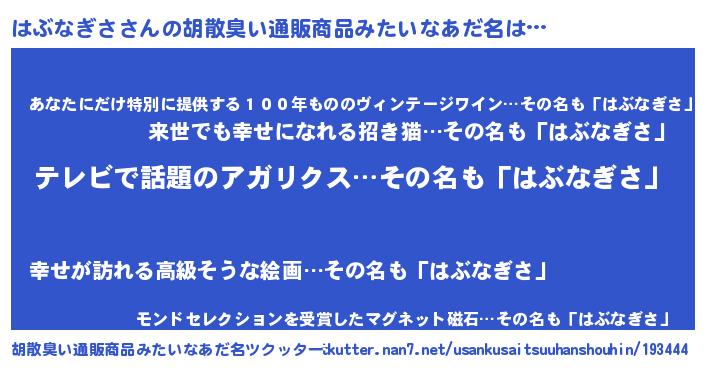 | 女子向けラノベタイトル風あだ名 | 『はぶなぎさアンティーク』 |