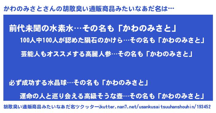 | 2chまとめサイト | サイト名『ニューかわのみさと速』 |