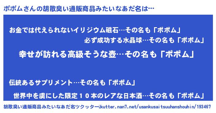 | 女子向けラノベタイトル風あだ名 | 『ポポムの雑貨屋さん』『ポポム恋絵巻』 |
