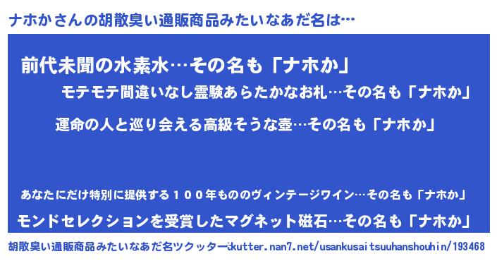 | 意味不明あだ名 | 『ヨモギ科ナホか属』『永久保存ナホか』 |