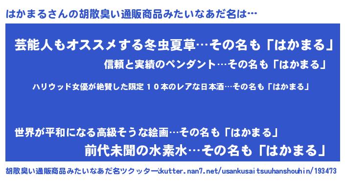 | 意味不明あだ名 | 『住所不定無職はかまる(47歳)』 |