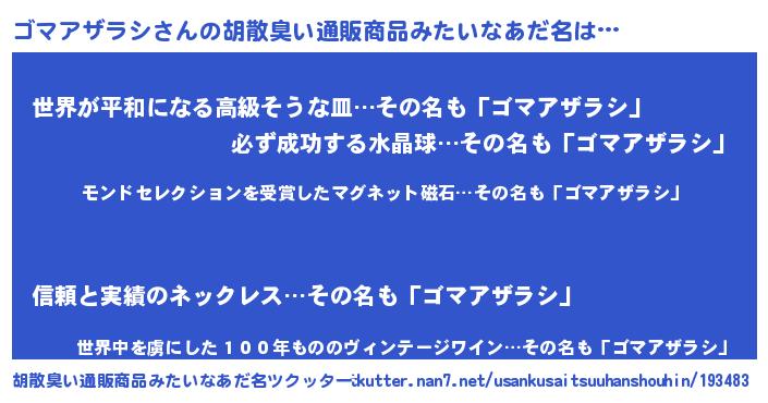 | ポケモン風あだ名 | 『ゴックウザ』『ゴマアダネ』 |