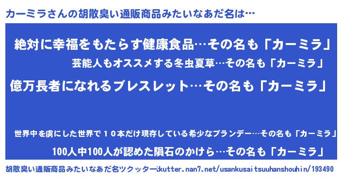 | ヘコむあだ名 | 『カーにー』『カーミラ(笑)』 |