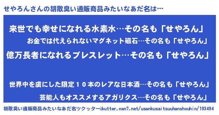 | 男性向けラノベタイトル風あだ名 | 『セヤロンアートオンライン』 |