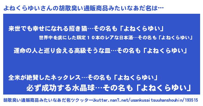 | 肩書あだ名 | 『よねくらゆい大将』『よねくらゆい先生』 |