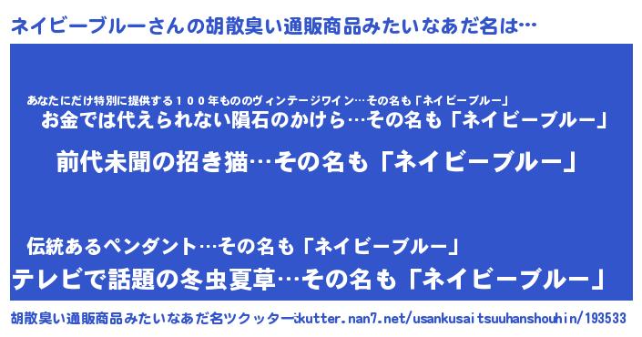 | 男性向けラノベタイトル風あだ名 | 『うちのネイビーブルーが世界を掌握している!』 |
