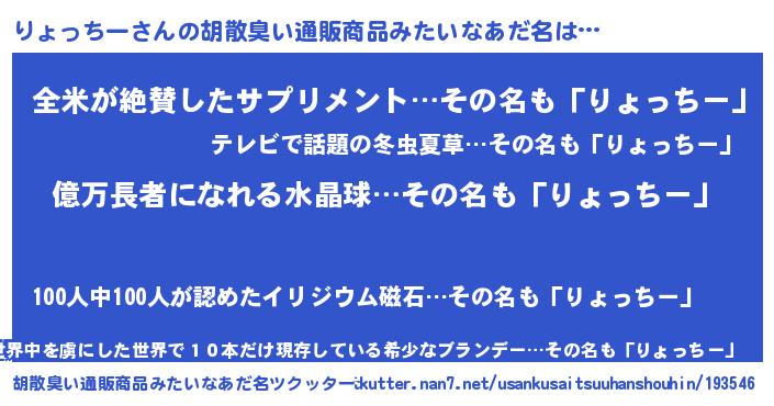 | 意味不明あだ名 | 『ペロリンりょっちー』『自称りょっちー』 |