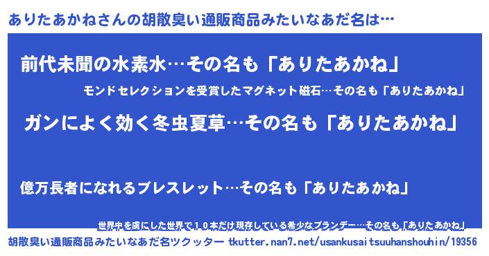 | 意味不明あだ名 | 『自称ありたあかね』 |