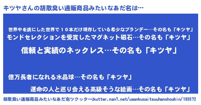 | 意味不明あだ名 | 『とにかく怪しいキツヤ』 |
