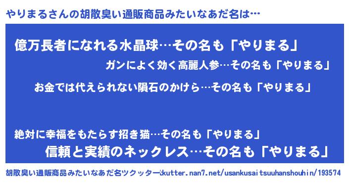 | 欧米人風あだ名 | 『ダニエルやりまる』『マイケルやりまる』 |