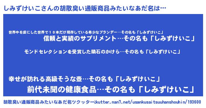 | ヘコむあだ名 | 『しみずけいこ(遠い目)』『しみっぺ』 |