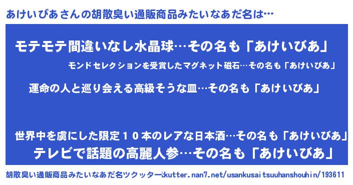 | 意味不明あだ名 | 『あけいびあフォーエバー』 |