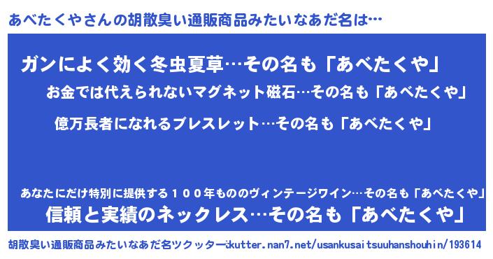 | 肩書あだ名 | 『あべたくやCEO』『あべたくや総統』 |