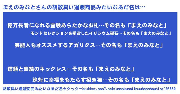| 意味不明あだ名 | 『自称まえのみなと』 |