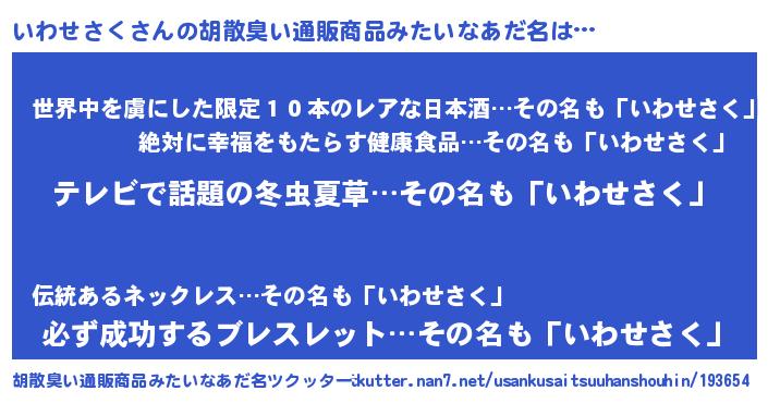 | ヘコむあだ名 | 『いわもー』『いわせさく(爆)』 |