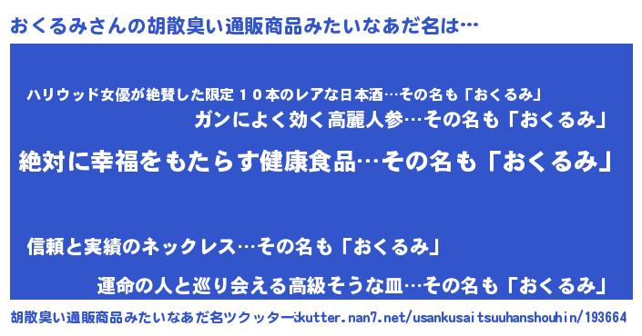 | 意味不明あだ名 | 『永久保存おくるみ』『自称おくるみ』 |