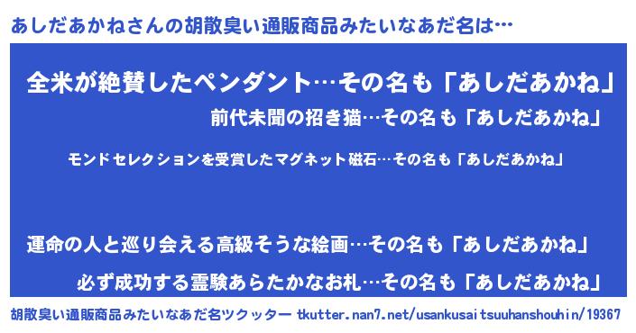 | 欧米人風あだ名 | 『ダニエルあしだあかね』 |