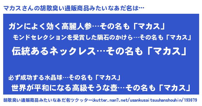 | 意味不明あだ名 | 『とにかく怪しいマカス』『自称マカス』 |