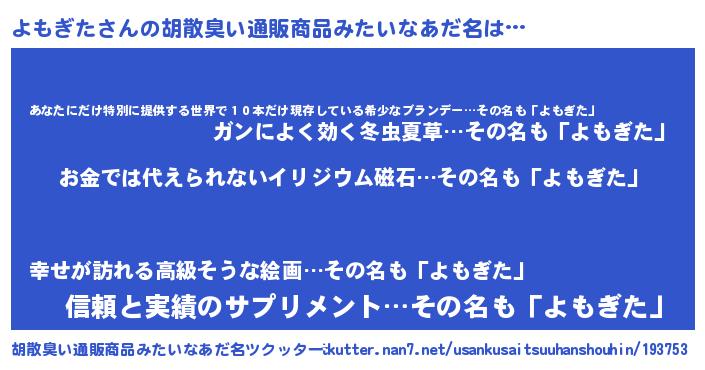 | 欧米人風あだ名 | 『ダニエルよもぎた』『ウサインよもぎた』 |