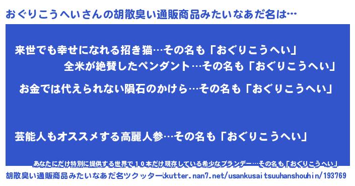 | ヘコむあだ名 | 『おぐりこうへい(苦笑)』『おぐ太郎』 |