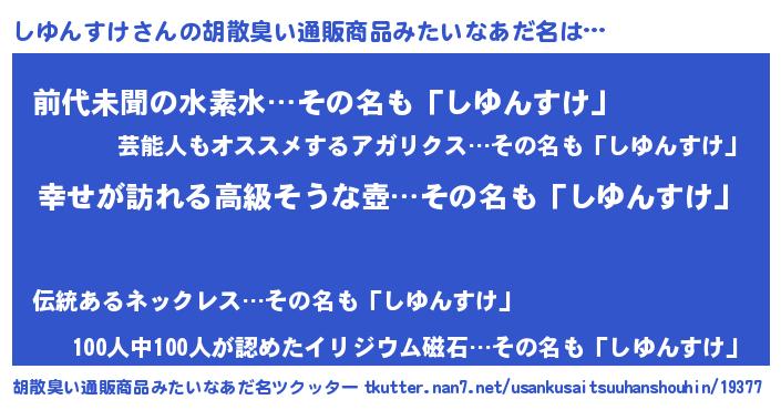 | 男性向けラノベタイトル風あだ名 | 『シユンスケスレイヤー』 |