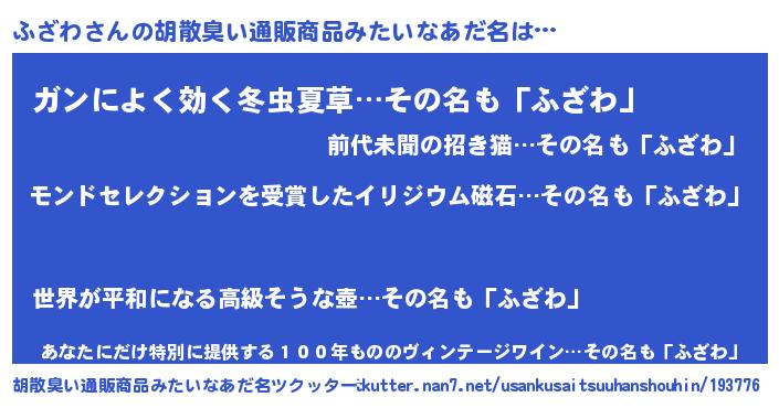| ヘコむあだ名 | 『ふざわ(苦笑)』『つくし』『ふざを』 |