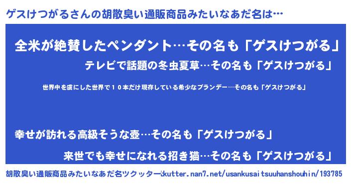 | ヘコむあだ名 | 『ゲスっちょ』『ゲスけつがる(遠い目)』 |