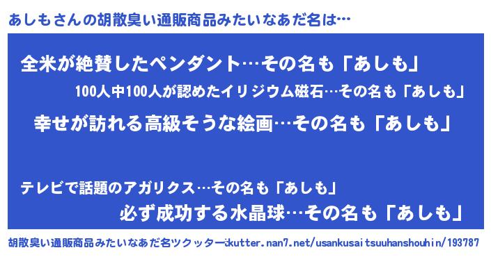 | 肩書あだ名 | 『あしも総理大臣』『あしも塾長』 |