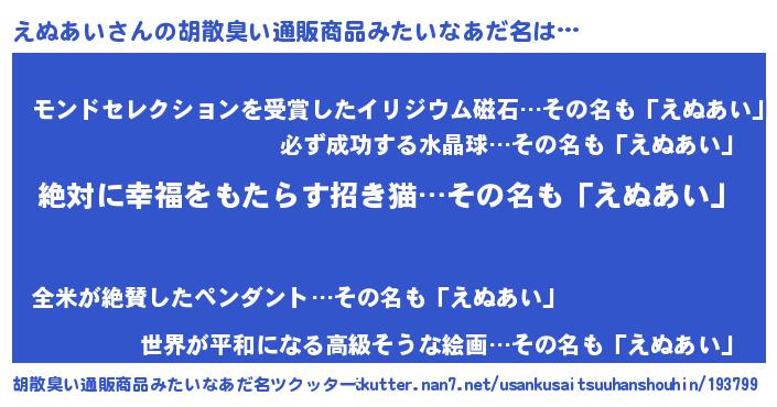 | ヒーロー風カッコイイあだ名 | 『ネオエヌアイ』『友情の使者えぬあい』 |