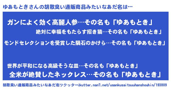 | ヘコむあだ名 | 『ゆあっちょ』『ゆあもとき(苦笑)』 |