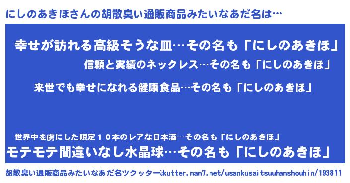 | ヘコむあだ名 | 『にしのあきほ(爆)』『牛乳』 |