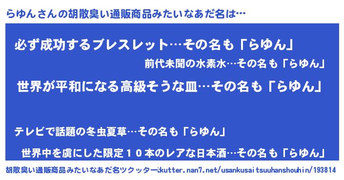 | ヘコむあだ名 | 『豆乳』『らゆにー』『らゆん(笑)』 |