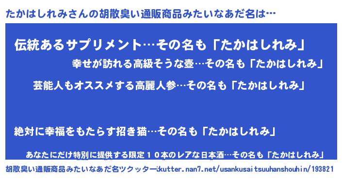 | 意味不明あだ名 | 『ヨモギ科たかはしれみ属』 |