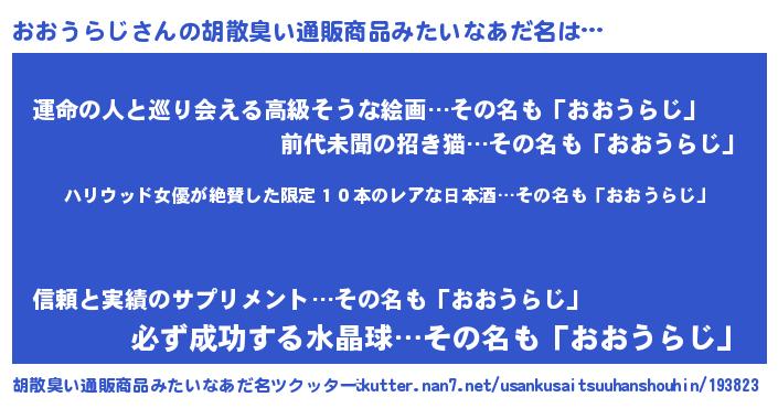 | 意味不明あだ名 | 『住所不定無職おおうらじ(56歳)』 |