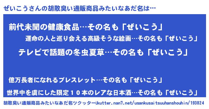 | 意味不明あだ名 | 『自称ぜいこう』『永久保存ぜいこう』 |