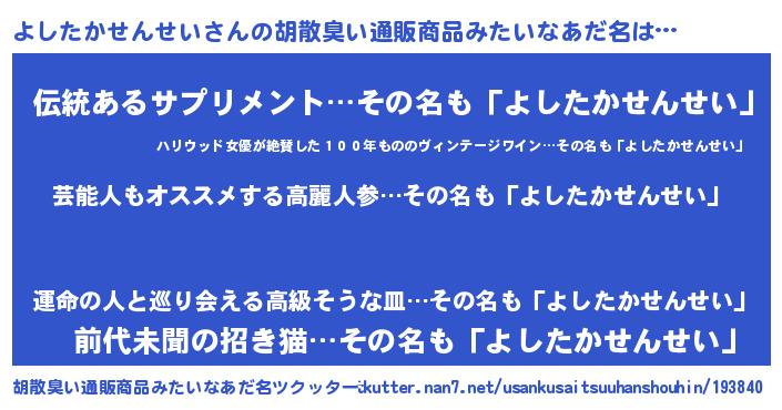 | ポケモン風あだ名 | 『ヨシセウス』『ヒヨシタカセンセイ』 |