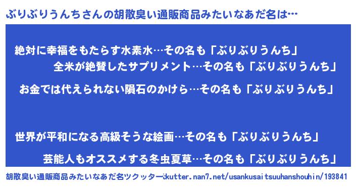 | ヒーロー風カッコイイあだ名 | 『慈愛の使者ぶりぶりうんち』 |